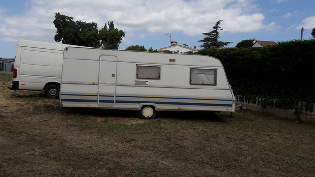 En la parcela hay un rbol que da mucha sombra es un lugar tranquilo y familiar. La caravana tiene 3 ambientes sta consta de una cama de 1 50 litera de dos camas y en el centro la mesa con dos sofs se convierte en una cama de 1 35. Enganche con ballestas estabilizadores.