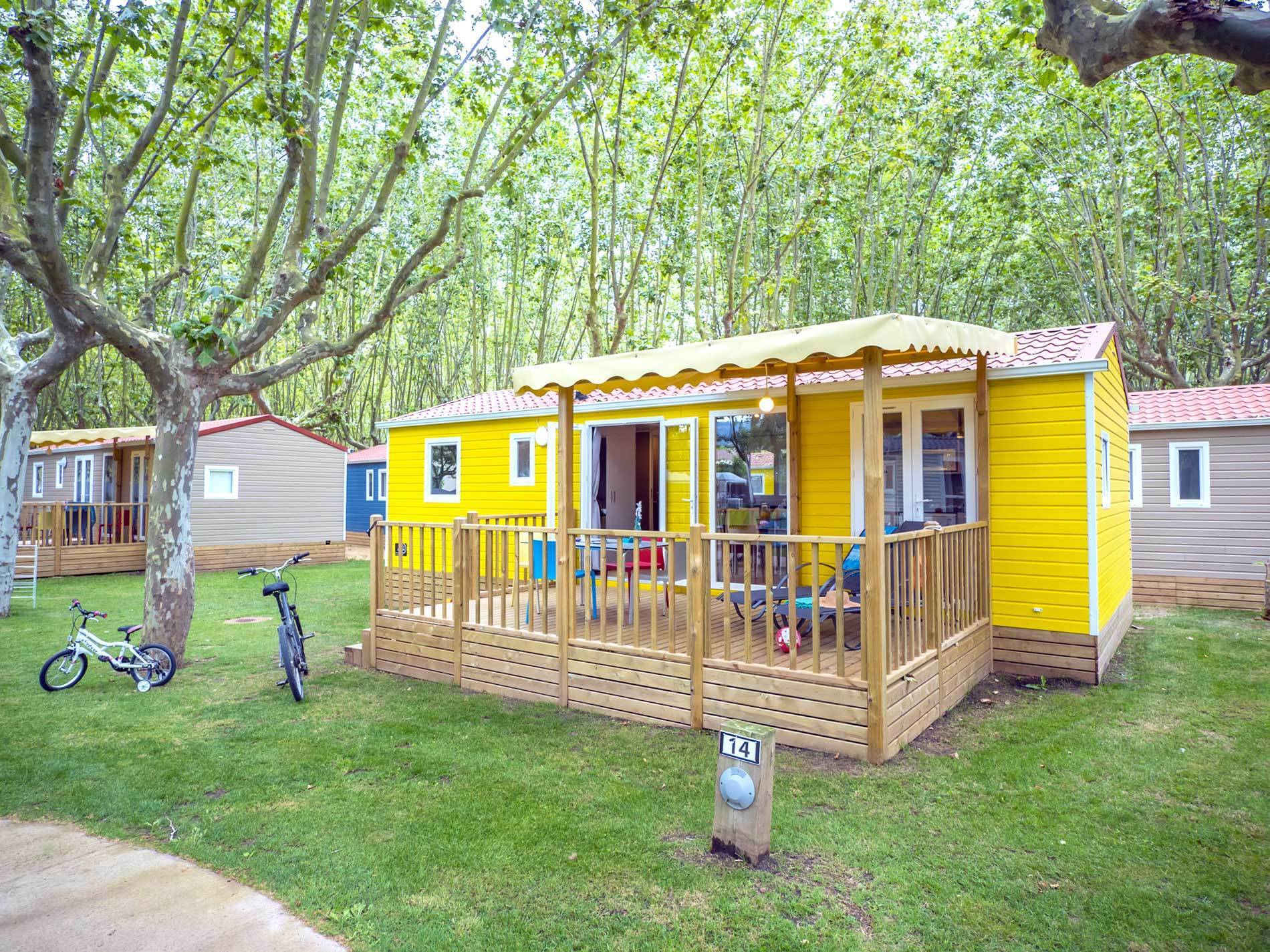 Depsito bajo del 15. El Camping dispone de Mobilhomes Hay 44 mobilhome para 6 personas cuyos precios varian desde 65 en temporada baja hasta 244 en temporada. 6 km Oficina de cambio.